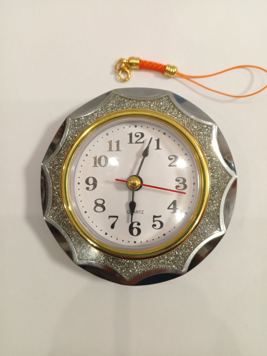 Часы декоративные подарочные настенные. Металл, серебро, блестки