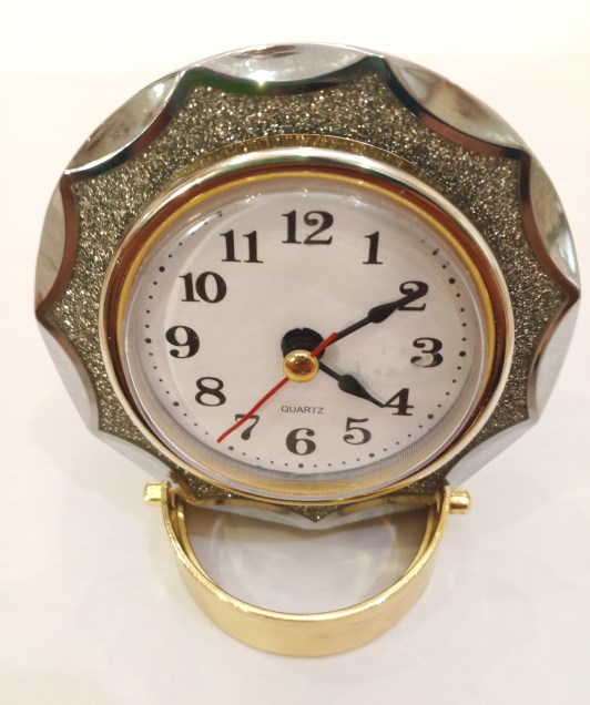 Часы декоративные подарочные настольные. Металл, серебро, блестки