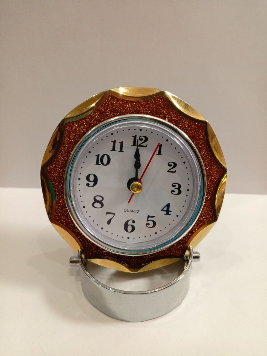 Часы декоративные подарочные настольные. Металл, золото, блестки
