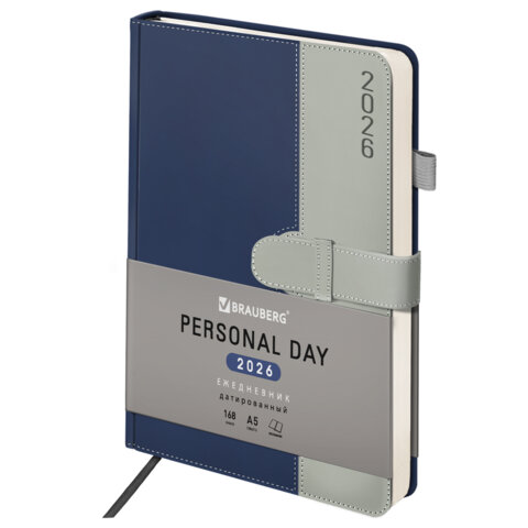 | Ежедневник датированный 2026, А5, 138х213 мм, BRAUBERG "Esthetic", под кожу, держатель для ручки, застежка, синий/серый, 117373 |