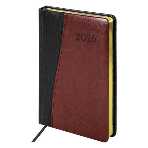 | Ежедневник датированный 2026, А5, 138x213 мм, BRAUBERG "Cayman", под кожу, черный/коричневый, 117045 |