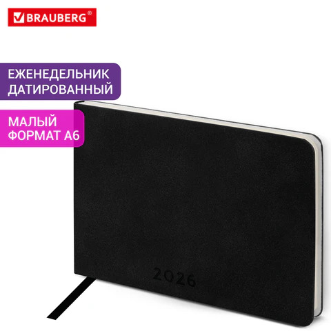 Еженедельник датированный 2026 МАЛЫЙ ФОРМАТ 105х160 мм, А6, BRAUBERG "Unique", черный, 117208 |