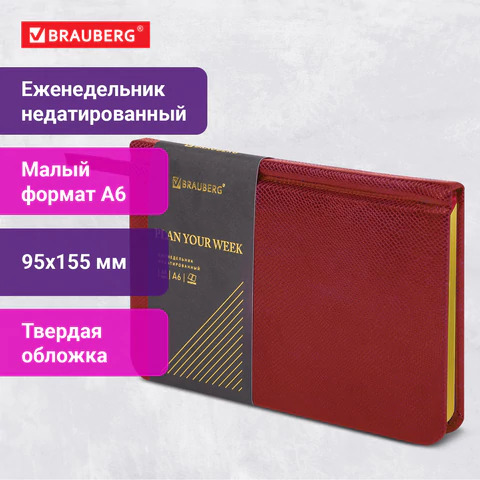 | Еженедельник недатированный МАЛЫЙ ФОРМАТ 95х155 мм, А6, BRAUBERG "Iguana", под кожу, 64 л., красный, 114481 |