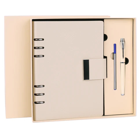 Подарочный набор включает в себя недатированный ежедневник на кольцах с внутренним блоком из 100 листов кремовой бумаги плотностью 70 г/м2. Благодаря классическому формату А5 (165x229 мм) ежедневник удобно использовать как в офисе, так и на выездных деловых встречах. Твердая обложка стилизована под текстурную кожу. Ежедневник фиксируется магнитной застежкой, поэтому не откроется в сумке или портфеле и страницы не помнутся. Также в набор входит ручка со стильным корпусом в тон ежедневника и высококачественными чернилами. Сменный стержень в комплекте позволит дольше наслаждаться мягким письмом. Набор упакован в плотную подарочную картонную коробку. Все элементы набора выполнены в одном цвете.