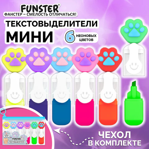Текстовыделители FUNSTER "ЛАПКИ" предназначены для выделения текста на бумаге любого типа. Идеально подходят для решения учебных, домашних и офисных задач.