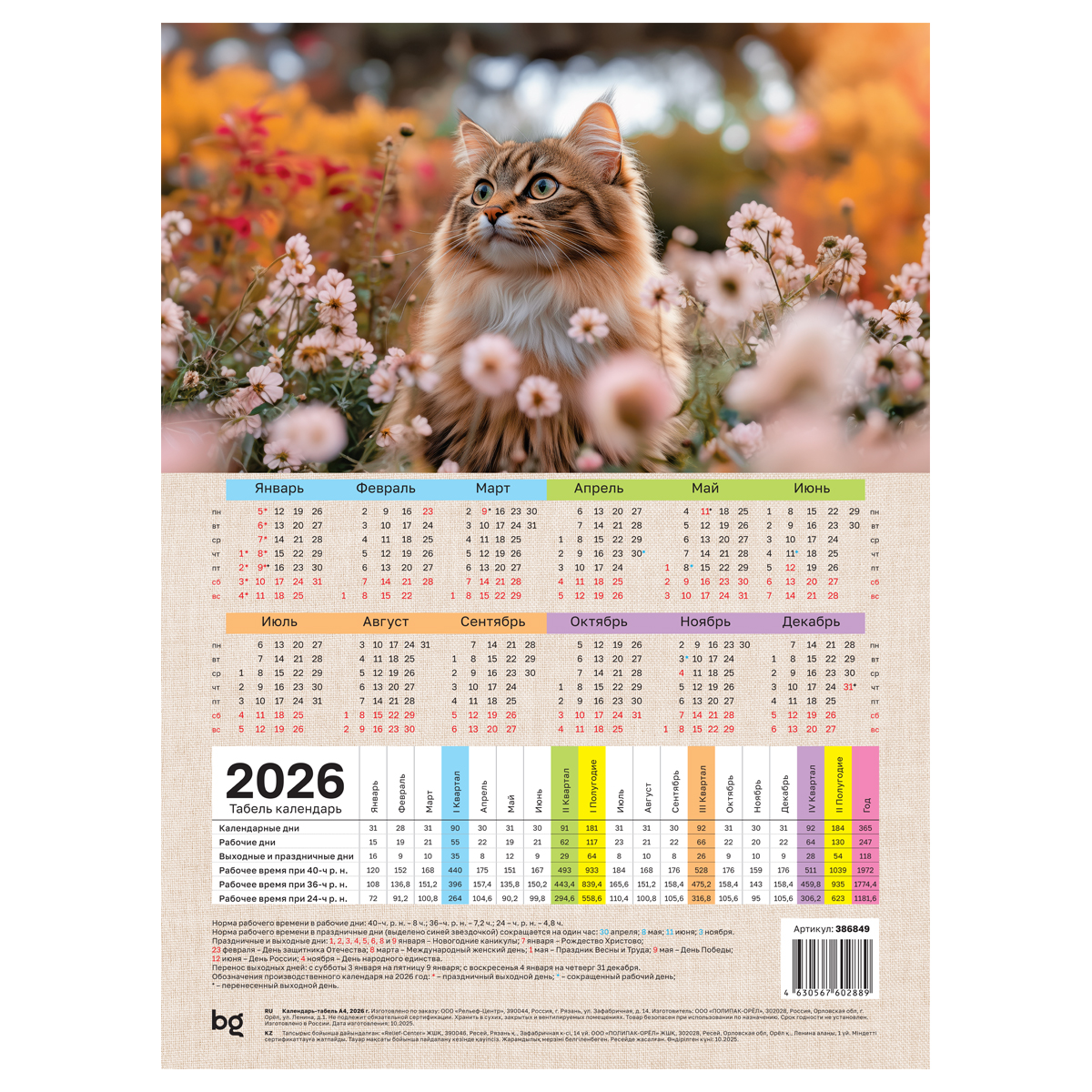 | Календаpь-табель BG А4, 2026г (Кошка) |