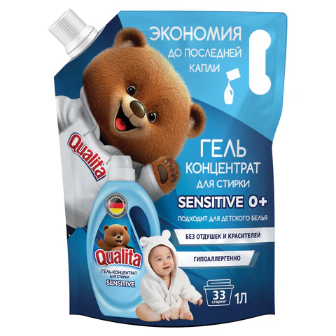 | Гель для стирки 1 л, QUALITA "Sensitive 0+" гипоаллергенный, концентрат, дой-пак, 13804 |