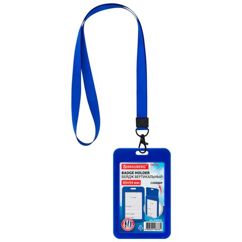 | Бейдж вертикальный (85х54 мм), лента 45 см с карабином, СЛАЙДЕР, синий, BRAUBERG EXTRA, 238830 |