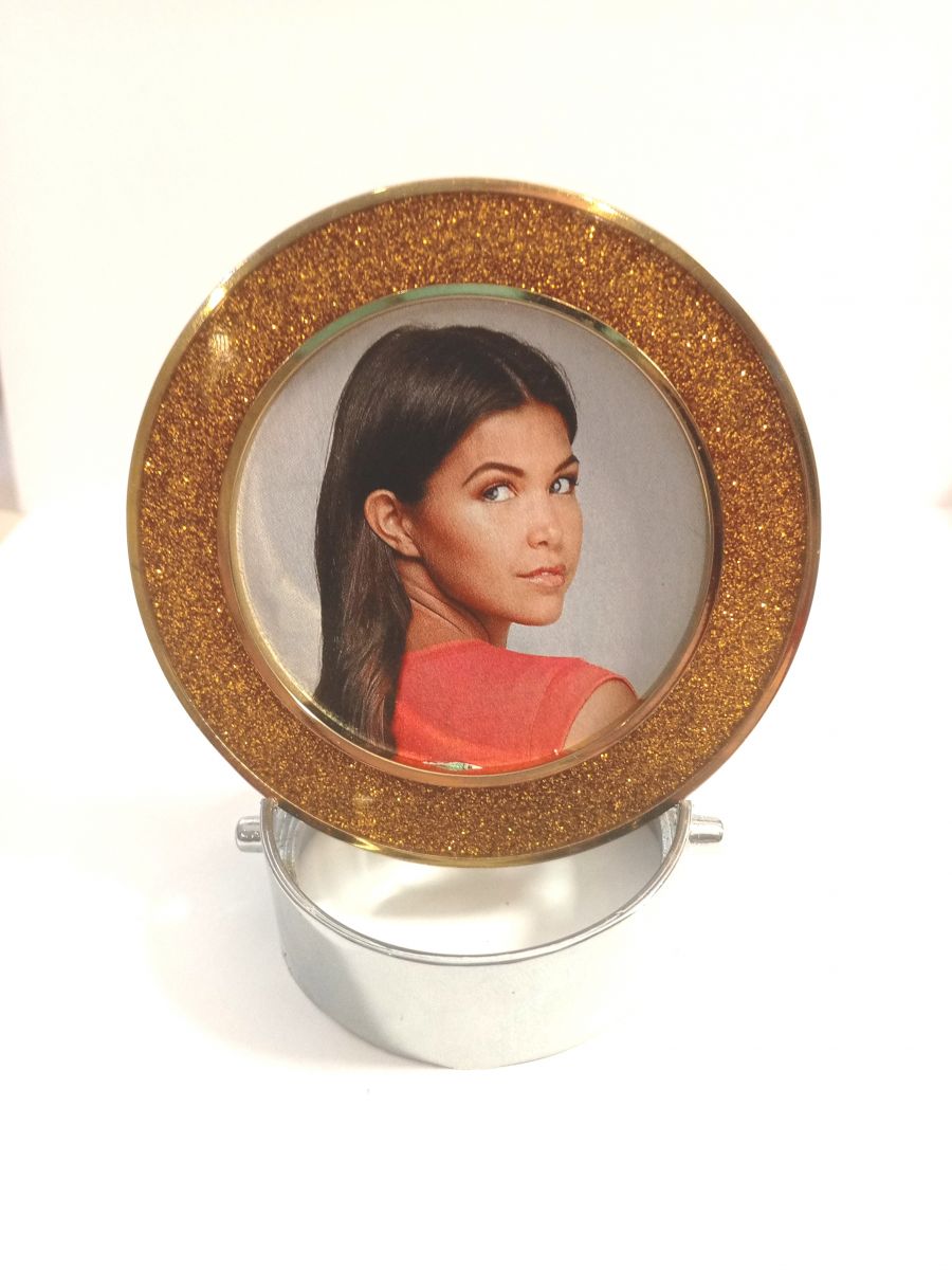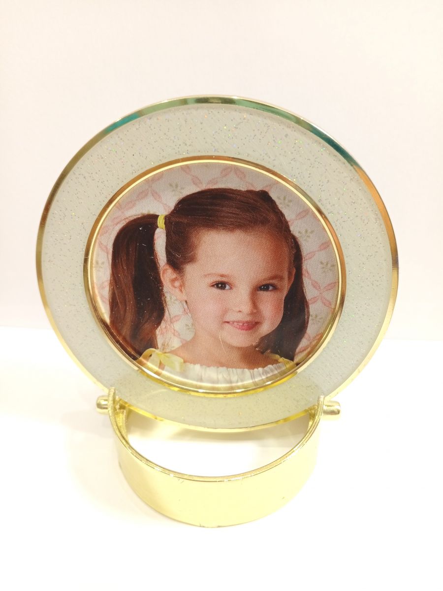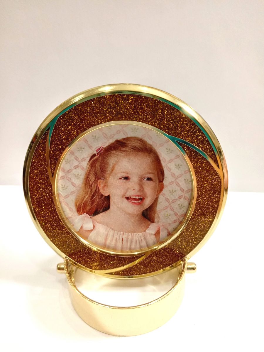 Рамка для ФОТО настольная. Металл, МОЛОКО, блестки, золото D=82mm