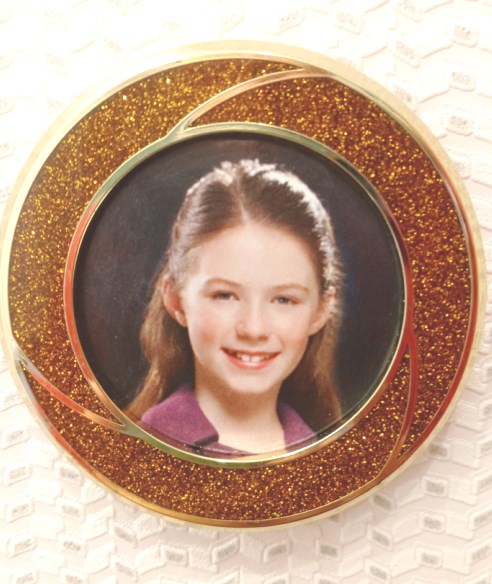 Рамка для ФОТО настенная. Металл, МОЛОКО, блестки, золото Диаметр=82мм