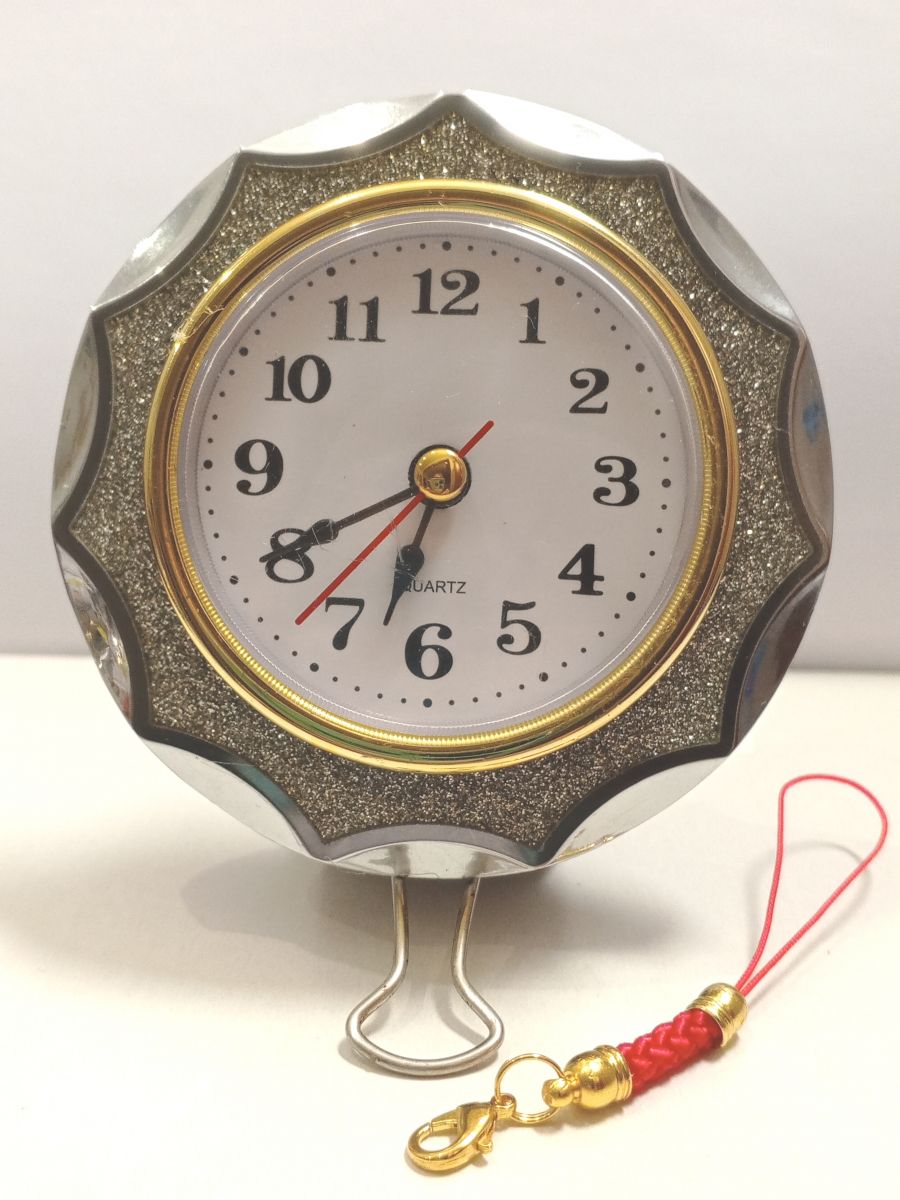 Часы декоративные подарочные настенные. Металл, серебро, блестки, Волна